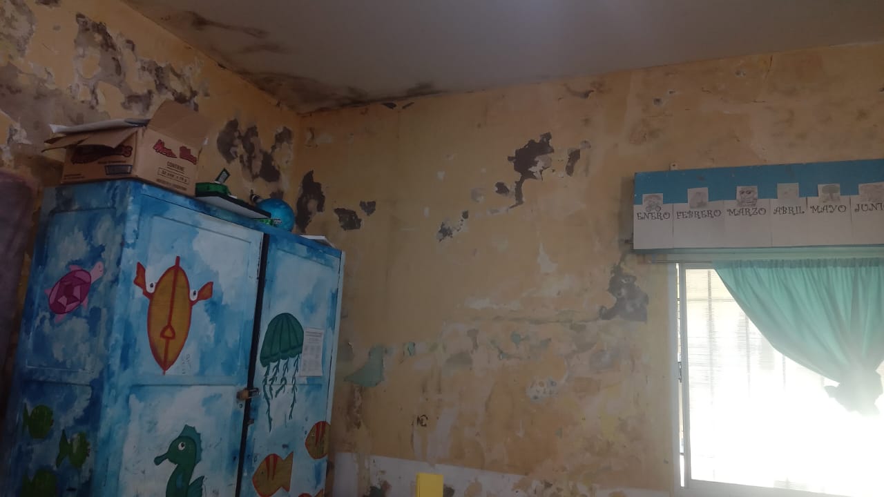 “Entra toda la humedad, la maestra me dijo que incluso el agua ingresa dentro del aula. Ella es alérgica y muchos chicos también estuvieron enfermos, incluido mi hijo”, relató una madre que decidió exponer públicamente el problema. Las imágenes difundidas muestran un panorama desolador: paredes cubiertas de humedad y un ambiente totalmente inadecuado para los chicos.