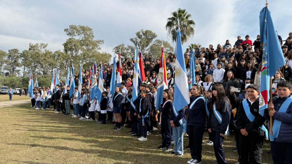 La ceremonia, presidida por el intendente Carlos De Grandis, reunió a autoridades provinciales, representantes de las fuerzas armadas y de seguridad, veteranos de Malvinas, instituciones educativas, agrupaciones tradicionalistas, vecinos y vecinas. Como cada año, más de mil banderas argentinas ondeaban en manos de la comunidad durante la caravana aniversario que recorrió distintos puntos de la ciudad hasta llegar al sitio histórico.
