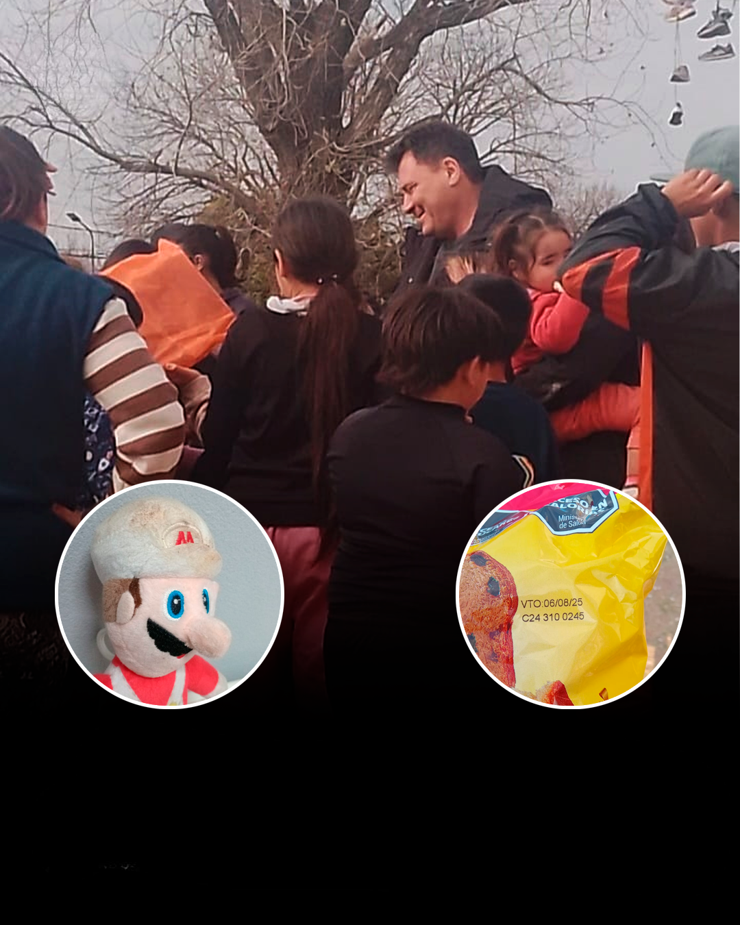 Según testimonios recibidos en esta redacción, los obsequios entregados resultaron indignantes: algunos juguetes «eran usados y estaban sucios«, mientras que entre las bolsas se distribuyeron panes dulces «que estaban vencidos«.